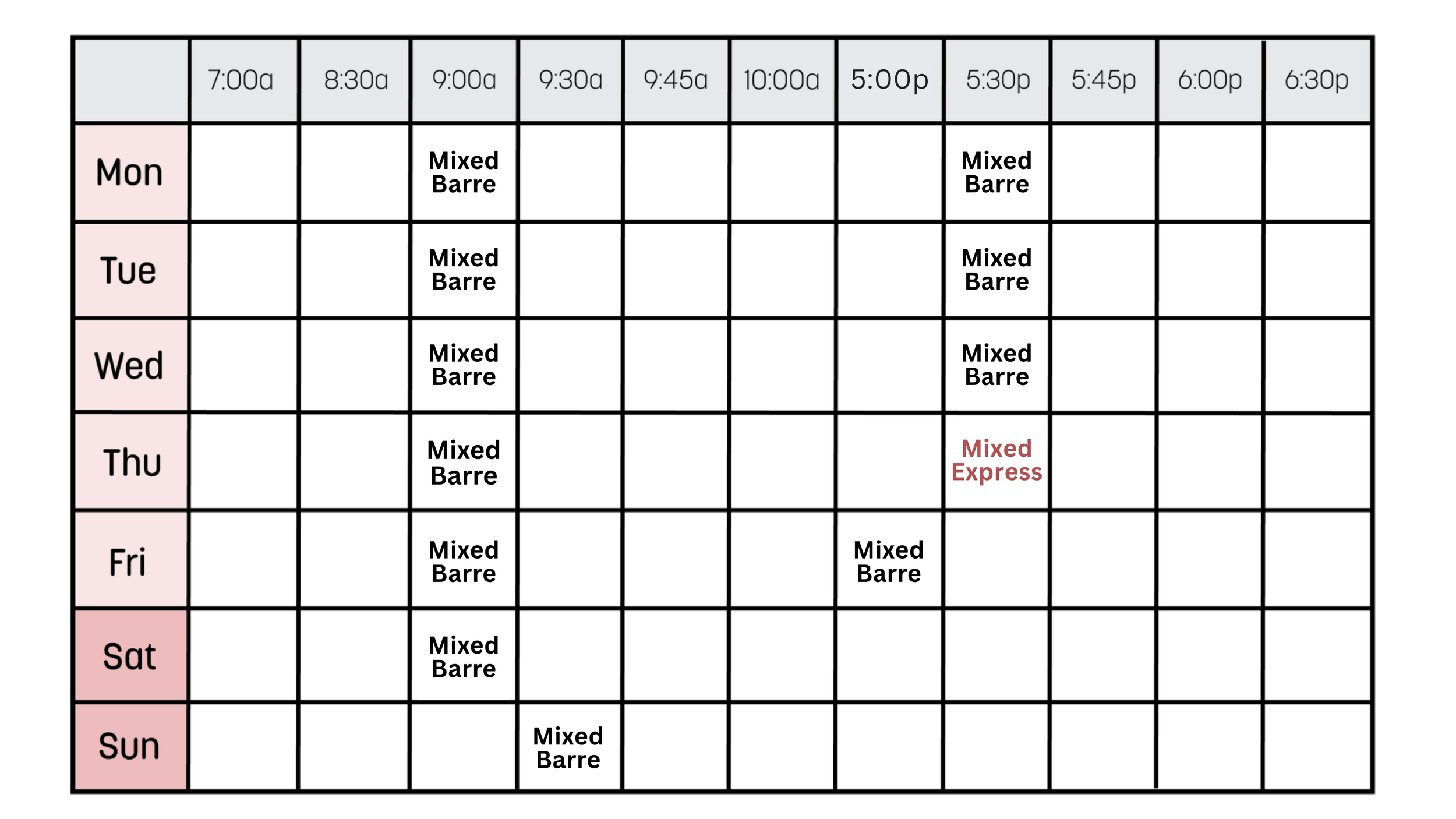 This class is for all levels. Beginners will begin to understand the technique and seasoned clients can perfect their skill set. Any level client can attend this class and get a challenging workout. A seasoned advanced client can take a Mixed Barre class and really make it challenging. The cueing and pacing is slower than a Tru Barre class. Options and modifications are given regularly to enable all clients to be successful. Clients are encouraged to work at their own level and to make the pose the priority for each exercise. All new clients are recommended to attend a Barre Essentials Workshop within the 1st month of their package.